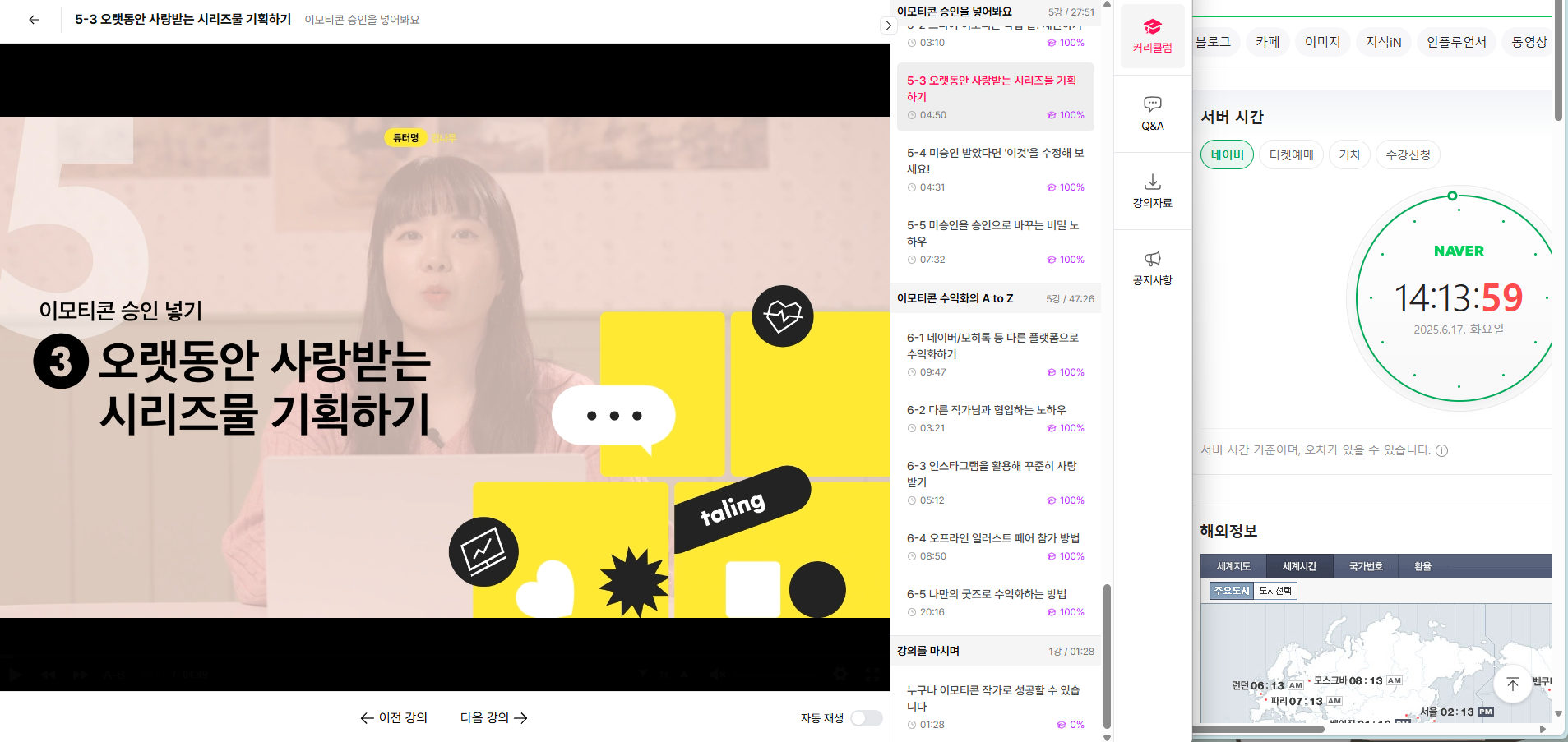 이제 이모티콘 제작의 마지막 단계에 다다랐다는 실감이 드는 오늘, 5-3강에서는 ‘성공적인 이모티콘은 시리즈로 이어진다’는 주제를 다뤘어요. 단발성 프로젝트로 끝나는 것이 아니라, 장기적으로 사랑받는 IP로 성장할 수 있다는 희망을 보여준 강의였습니다. 💫