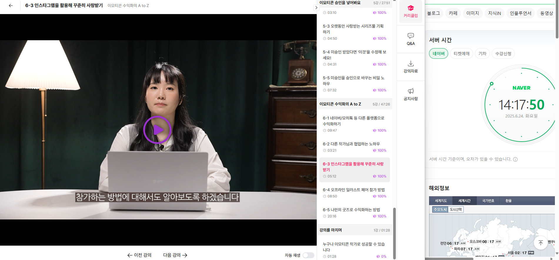 오늘 6-3강에서는 이모티콘을 더 많은 사람들에게 알릴 수 있는 **인스타그램 활용법**에 대해 실전 위주의 팁을 많이 배웠어요. 그림을 완성하고, 승인을 받고, 출시하는 것도 중요하지만 **꾸준히 사랑받는 이모티콘으로 성장시키는 건 결국 ‘홍보력’**이라는 걸 절실히 느꼈습니다 📱
